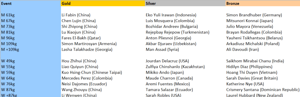The familiarity will come from China. Chinese lifters won 5 golds at the 2016 games and could easily match – even potentially comfortably exceed – that record this time. Their lifters have dominated the sport in recent years and most go into their event as overwhelming favourite.
