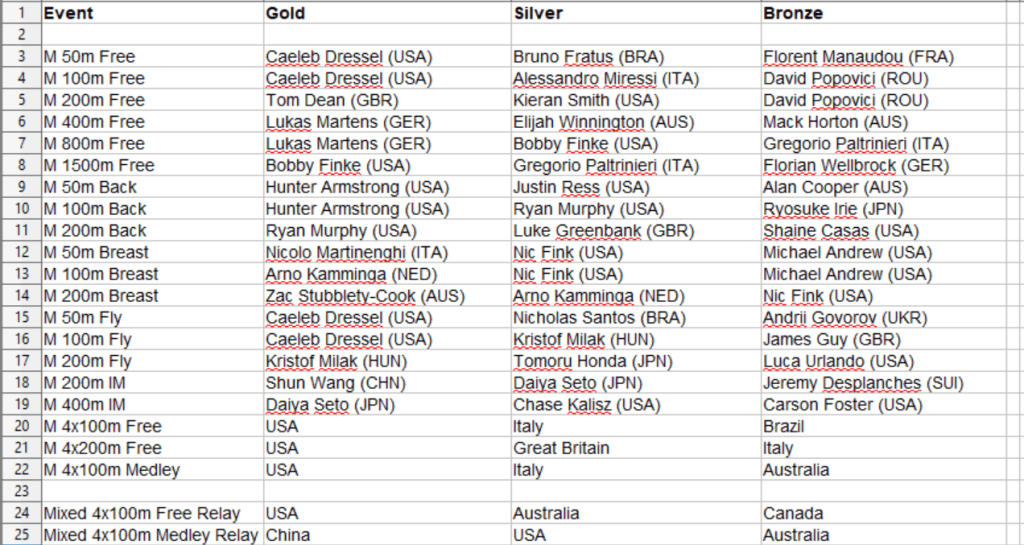 From a British point of view, these championships were potentially a chance to build on their successful Olympics. However, their medal chances have been hit heavily with injuries to Kathleen Dawson, Adam Peaty and the late Covid-related withdrawl of Duncan Scott. They do still have prospects (Tom Dean and Abbie Wood being two of their brightest) but expect this meet to be a relatively quiet one ahead of those potentially explosive Commonwealth Games in Birmingham.